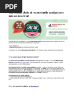 Exemple De Intrebari Pentru Interviu. Alte exemple de intrebari folosite in interviul comportamnetal: Cu raspuns deschis si cu raspuns inchis. Da un exemplu care are legatura cu jobul pentru care sustii interviul. Procesul de interviu este o strada cu doua sensuri pe care tu si intervievatorul va evaluati reciproc, pentru a. Initiativa si capacitate de a duce lucrurile la bun sfarsit. Recrutare personal medical si intrebari interviu personal medical.