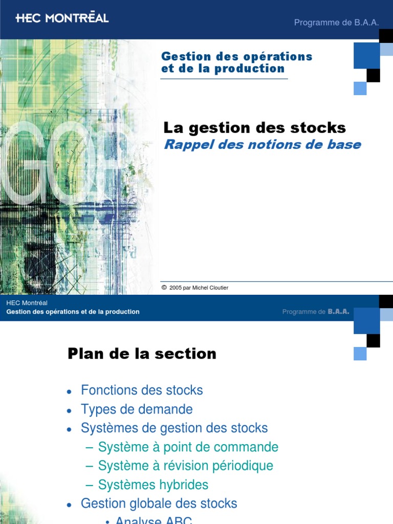 Rôle du gestionnaire de stocks le gestionnaire de stocks doit :