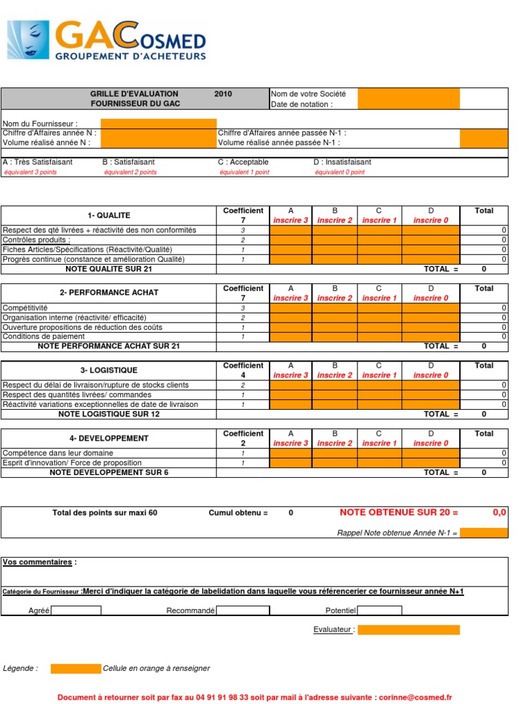 Exemple De Grille D'évaluation Des Fournisseurs. Elles permettent de regrouper les fournisseurs en fonction de leur positionnement stratégique et de la criticité du produit en des catégories homogènes afin de mieux gérer le réseau des fournisseurs. Évaluation des fournisseurs utilisez ce formulaire pour évaluer les performances générales des fournisseurs avec lesquels vous. La grille d'évaluation des capacités. Un système informatique d'évaluation du rendement des fournisseurs (erf) a été conçu afin de produire un rapport d'évaluation pour chacun de ces contrats à partir d'une grille. Exemple de grille d'entretien annuel d'évaluation. Elles permettent de regrouper les fournisseurs en fonction de leur positionnement stratégique et de la criticité du produit en des catégories homogènes afin de mieux gérer le réseau des fournisseurs.